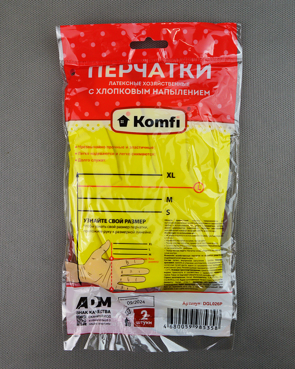 Перчатки латексные хозяйственные с х/б напылением Komfi