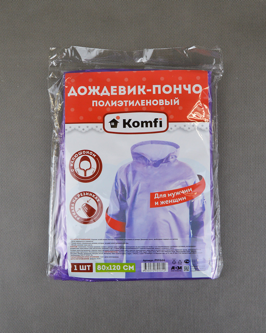 Плащ дождевик полиэтиленовый пончо с рукавами - плотный дождевик (цвет в ассортименте). Данный дождевик одевается через голову, и не имеет застежек, даже во время сильного ветра он не расстегнётся. Дождевик представлен увеличенного размера, что делает его свободным, не мешая вести активный образ жизни.