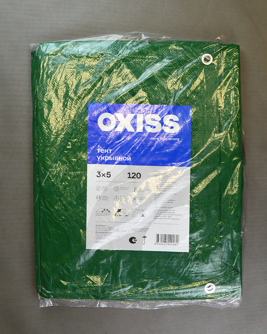 Универсальный укрывной тент «OXISS» - это долговечное полиэтиленовое полотно из трехслойного высокопрочного полимерного материала. Края изделия дополнительно укреплены плотным полимерным шнуром во избежание деформации при натяжении, а установленные нержавеющие люверсы обеспечивают легкое крепление при помощи обычных веревок или жгутов.