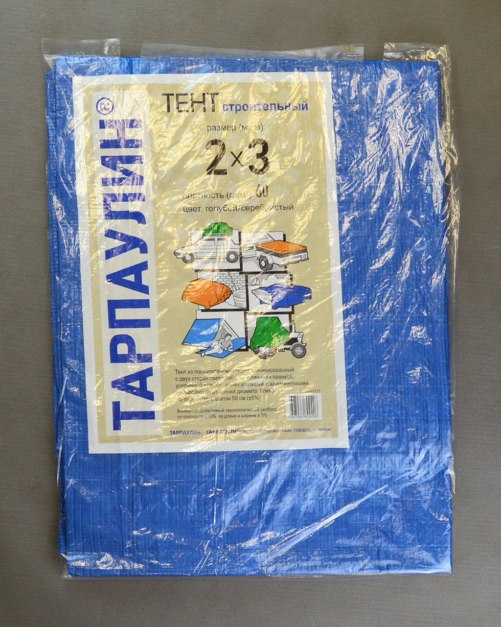 Тент из полипропиленовой ткани, ламинированный с двух сторон светостабилизированной пленкой, с алюминиевыми люверсами. Используется в качестве защиты от осадков и солнца для техники, бассейнов, для сельскохозяйственных нужд и т.д.