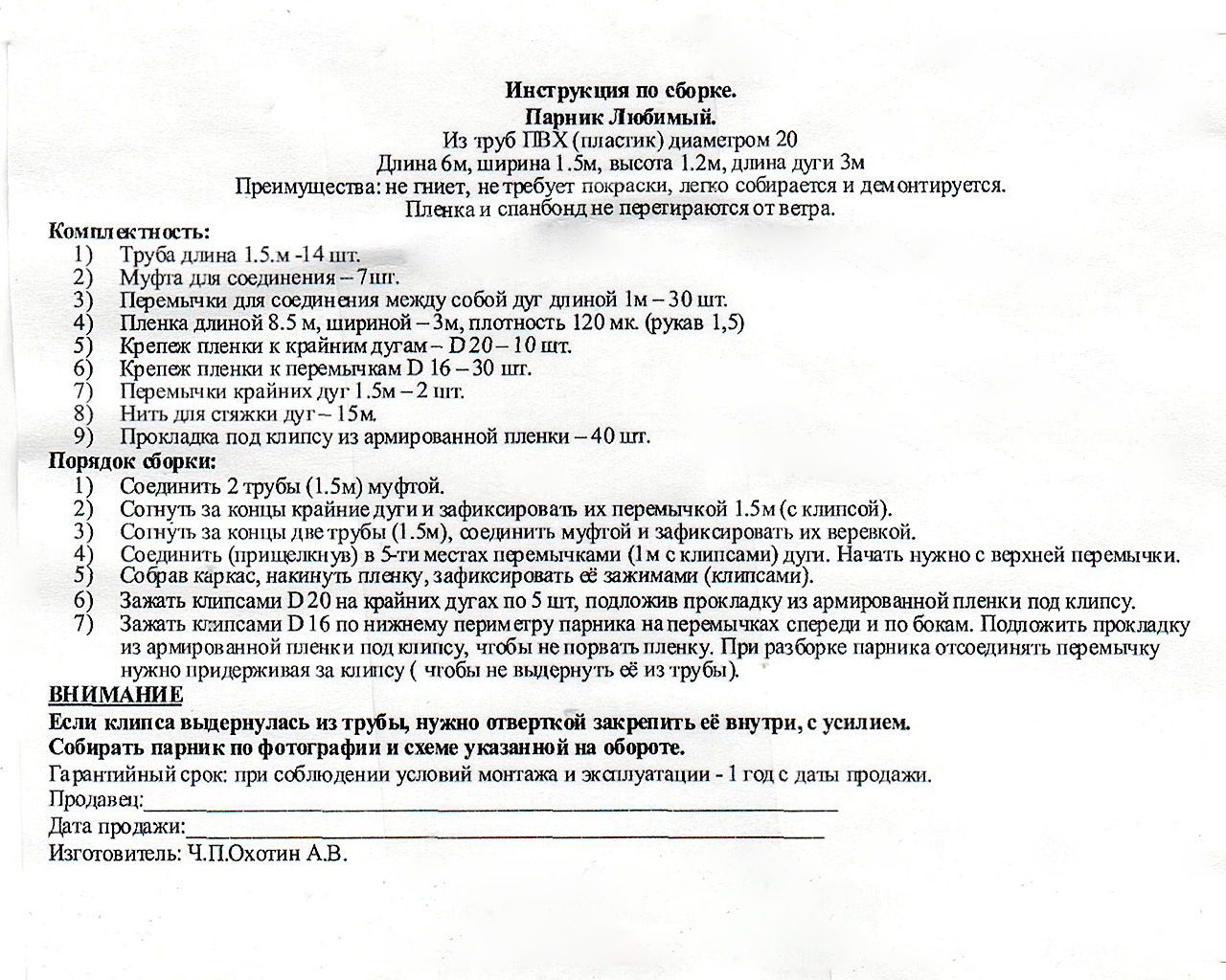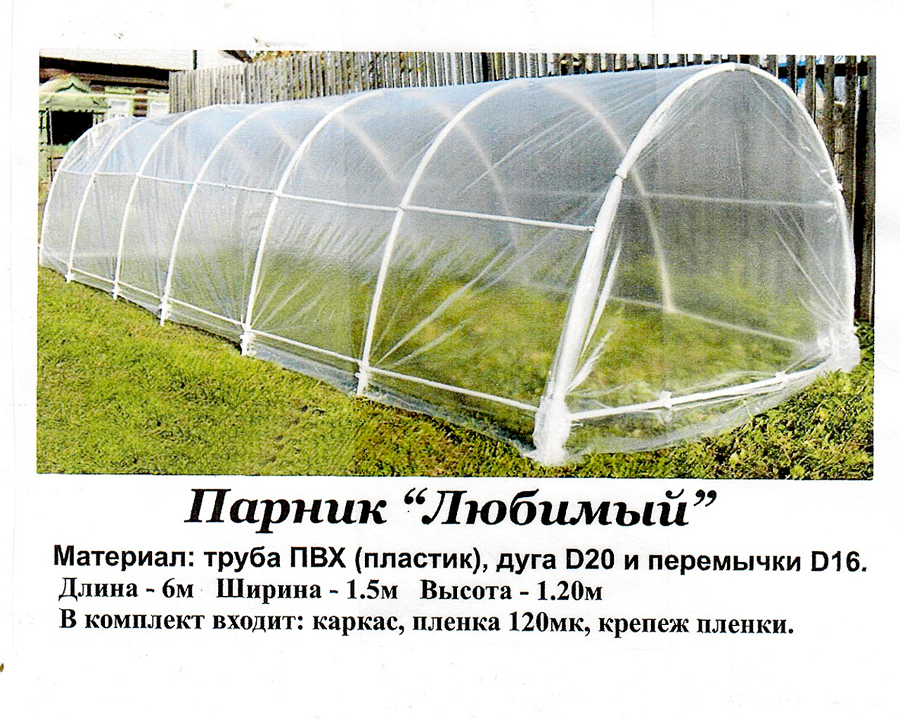 Т-Парник "Любимый-6м" 3м ПВХ дуги пленка 120мкм ш1,5*1,2м