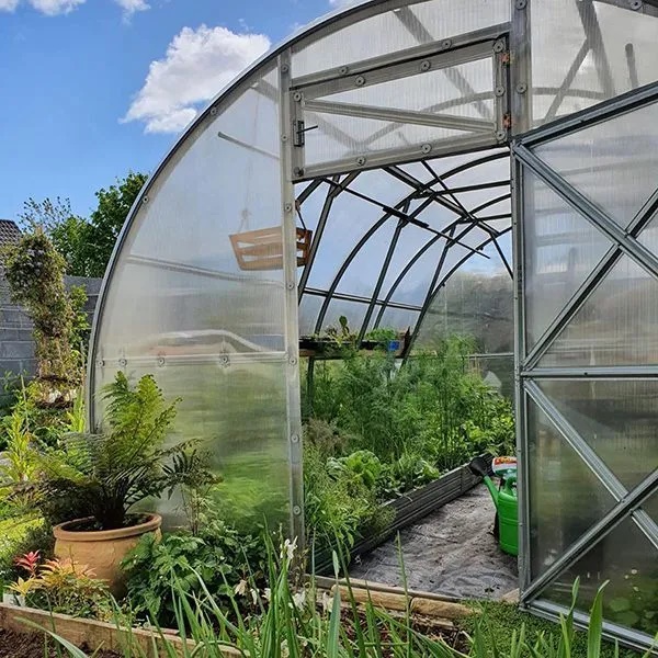 Арочная форма изделия выдерживает серьезные снеговые нагрузки, надежно защищает растения от перепадов температур и легко собирается.