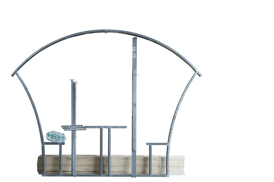 Длина беседки– 2м, ширина 1,7м. Этого достаточно, чтобы разместить 6-8 человек за столом, ширина которого 0,58м, а длина 2м. Каркас «Трали-Вали» сделан из оцинкованных металлических труб, покрытие – сотовый поликарбонат. Днем крыша арочной формы защитит от палящих лучей солнца, а в дождь укроет от непогоды.