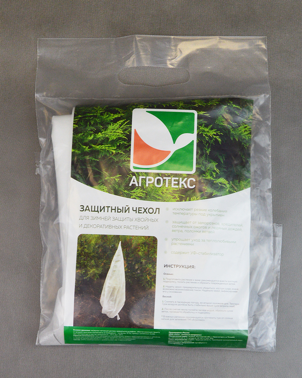 Защитный чехол изготовлен из плотного и дышащего нетканого материала 100г/м2, который обеспечивает оптимальные условия для зимовки теплолюбивых растений, защищает их от морозов, выпревания, перепадов температуры и солнечных ожогов.